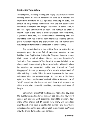Product placement in tv shows essay scholarships from nyuhgadingubud.com Begin writing your evaluation essay by pinpointing the specific genre of the tv show you're evaluating, and identify the intended audience of that tv show. If i were you, this is how i will write it. Let me take you through this process step by step. It was so exciting to me and the way you taught is very easy. This essay type can be used to discuss either real or imaginary events. To write a good essay, you always need to do some research. Essay writing is a skill many students need to equip themselves with while in college or the. When listing writers and directors for an episode, each person listed should be individually labeled as either writer or.